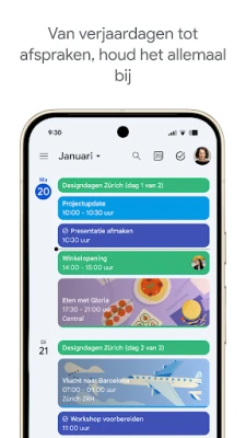 Stroomlijn uw dag en organiseer uw leven moeiteloos met Google Agenda. Deze intuïtieve app integreert naadloos met uw Gmail, waardoor reserveringen voor vluchten, hotels en evenementen automatisch aan uw planning worden toegevoegd. Of u nu op uw Android-telefoon, -tablet, Wear OS-apparaat of desktop werkt, uw agenda is altijd up-to-date en binnen handbereik, dankzij de slimme synchronisatie via uw Google-account. Breng al uw afspraken samen door externe agenda's, zoals Exchange, te consolideren in één helder overzicht. Deel eenvoudig uw planning met familie, vrienden of collega's en beheer taken direct naast uw afspraken. Pas Google Agenda aan uw stijl aan met thema's en kleurcodering, en navigeer soepel tussen dag-, week- en maandweergaven om altijd het complete plaatje te zien.