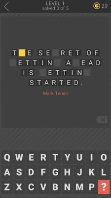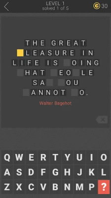 Duik in een wereld van wijsheid en inspiratie met een puzzelervaring die je geest prikkelt en je vocabulaire verrijkt. Ontdek de diepste gedachten, tijdloze spreuken en motiverende citaten die de menselijke geschiedenis heeft voortgebracht. Deze game transformeert de zoektocht naar wijsheid in een boeiend spel, waarbij elk niveau je uitnodigt om beroemde uitspraken te reconstrueren en te doorgronden. Het is meer dan alleen een spel; het is een reis door de schatkamer van menselijke kennis en vindingrijkheid, gepresenteerd in een innovatief en meeslepend format.