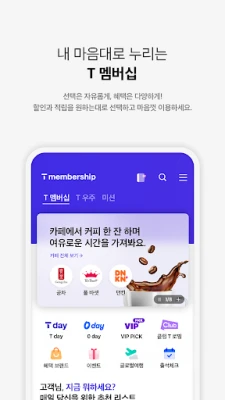 Ontdek T 멤버십, de gepersonaliseerde ledenservice voor SK Telecom klanten. Kies flexibel tussen kortingen of punten sparen en verdien eenvoudig T Pluspunten via diverse missies. Ervaar de op maat gemaakte T 우주 abonnementsdiensten en beheer al uw voordelen, coupons en meer in Mijn Ruimte, afgestemd op uw levensstijl.